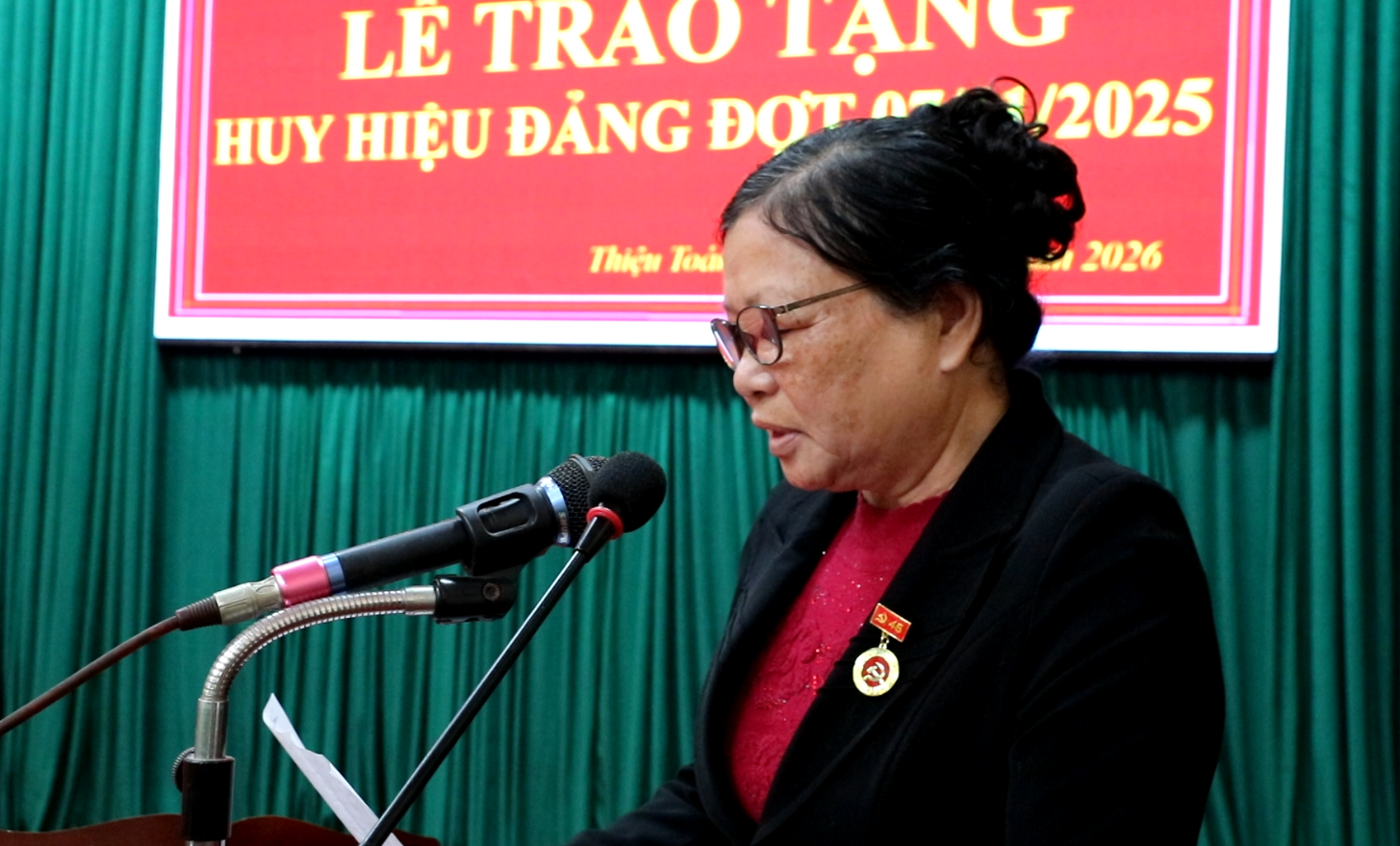 Thay mặt các đảng viên được nhận Huy hiệu Đảng, đồng chí Nguyễn Thị Thuỷ, đảng viên chi bộ Dân Quí bày tỏ niềm xúc động, vinh dự khi được Đảng ghi nhận quá trình phấn đấu của bản thân. Đồng chí khẳng định, dù ở bất cứ hoàn cảnh nào, các đảng viên cao tuổi Đảng của xã Thiệu Toán cũng luôn giữ vững bản lĩnh chính trị, tuyệt đối trung thành với mục tiêu, lý tưởng của Đảng; tiếp tục nêu gương cho con cháu và thế hệ trẻ noi theo, góp phần giáo dục truyền thống cách mạng cho cán bộ, đảng viên và Nhân dân địa phương.