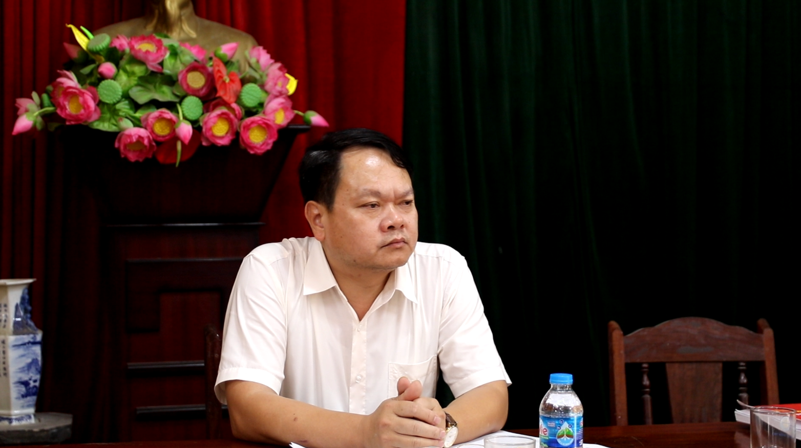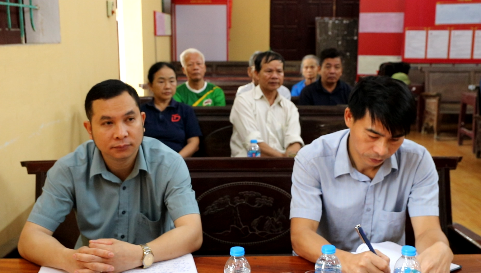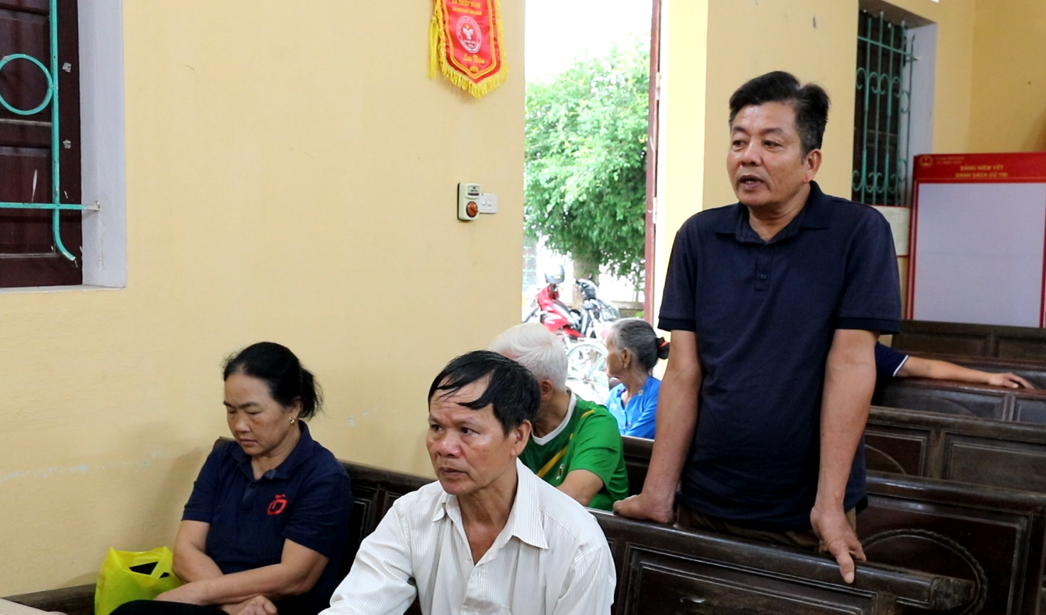 Đồng chí Bùi Trung Hiếu, Phó Bí thư Thường trực Đảng ủy làm việc tại thôn Thái Dương.