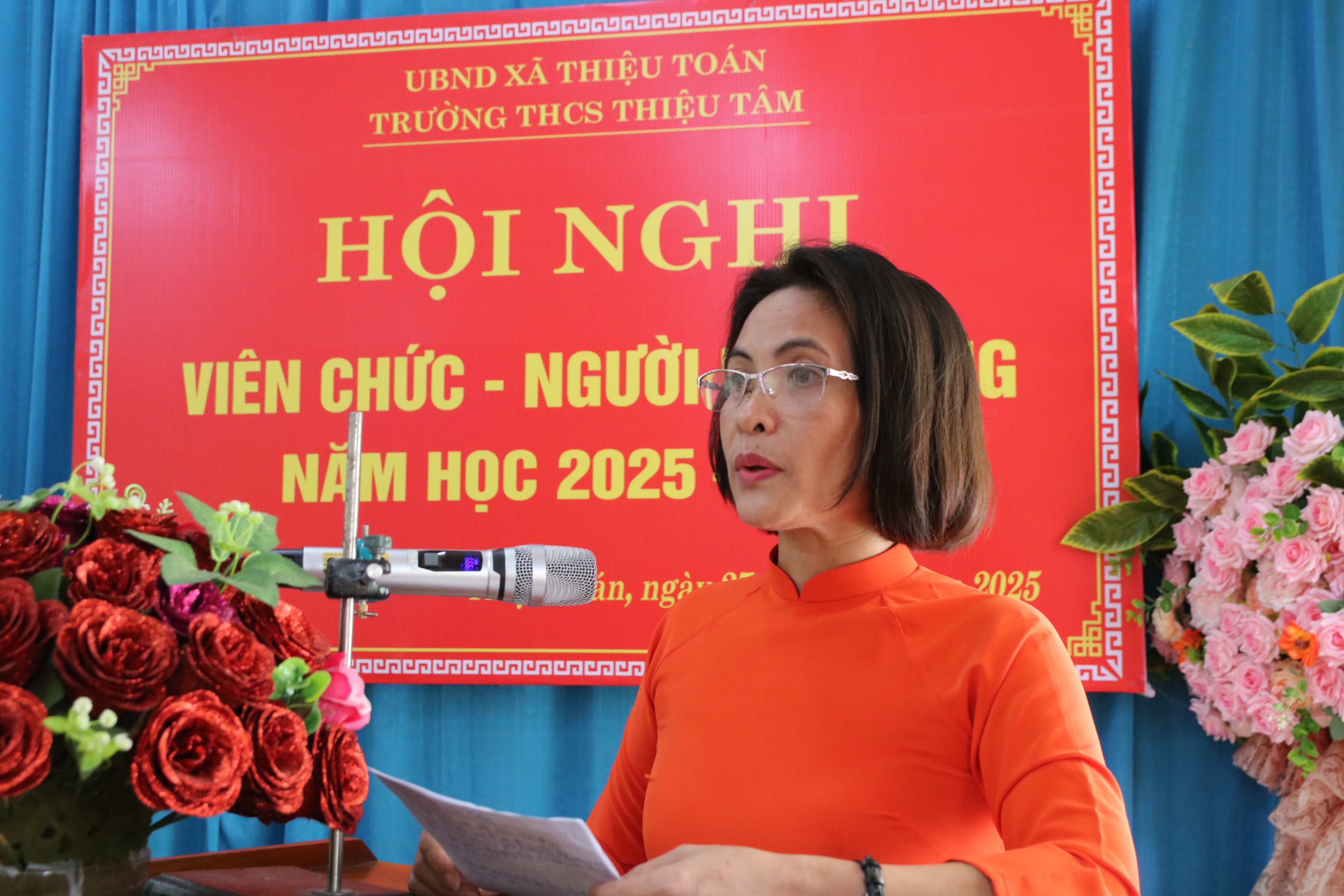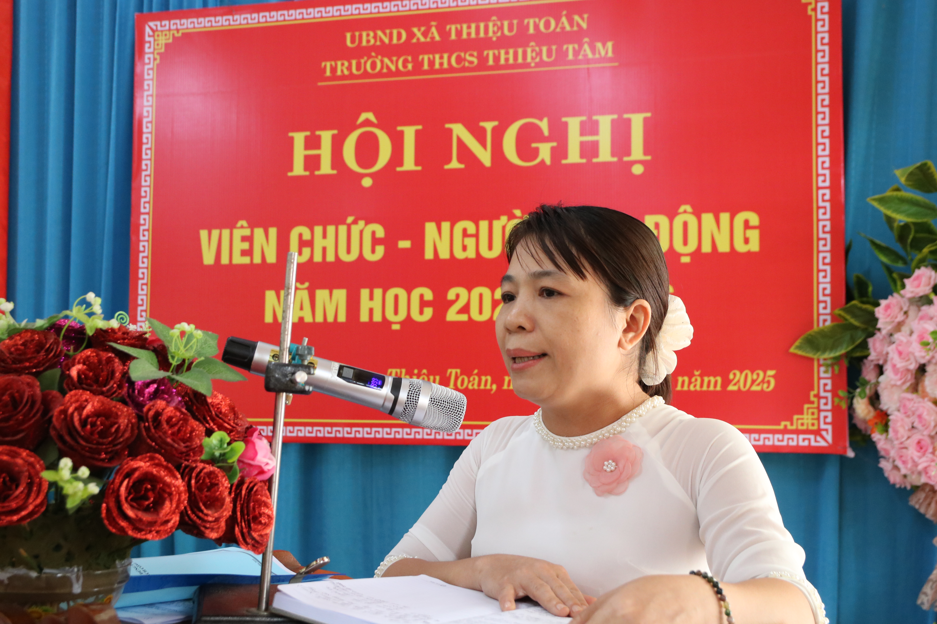 Tại hội nghị, Cô giáo Trần Thị Thúy, hiệu Trưởng trường THCS Thiệu Tâm báo cáo việc thực hiện các chủ trương chính sách, pháp luật của Đảng và Nhà nước trong nhà trường; báo cáo kiểm điểm của người đứng đầu; kiểm điểm việc thực hiện nghị quyết hội nghị trong năm học 2024- 2025, phương hướng nhiệm vụ năm học 2025- 2026. Thực hiện chế quy định nội bộ của đơn vị...