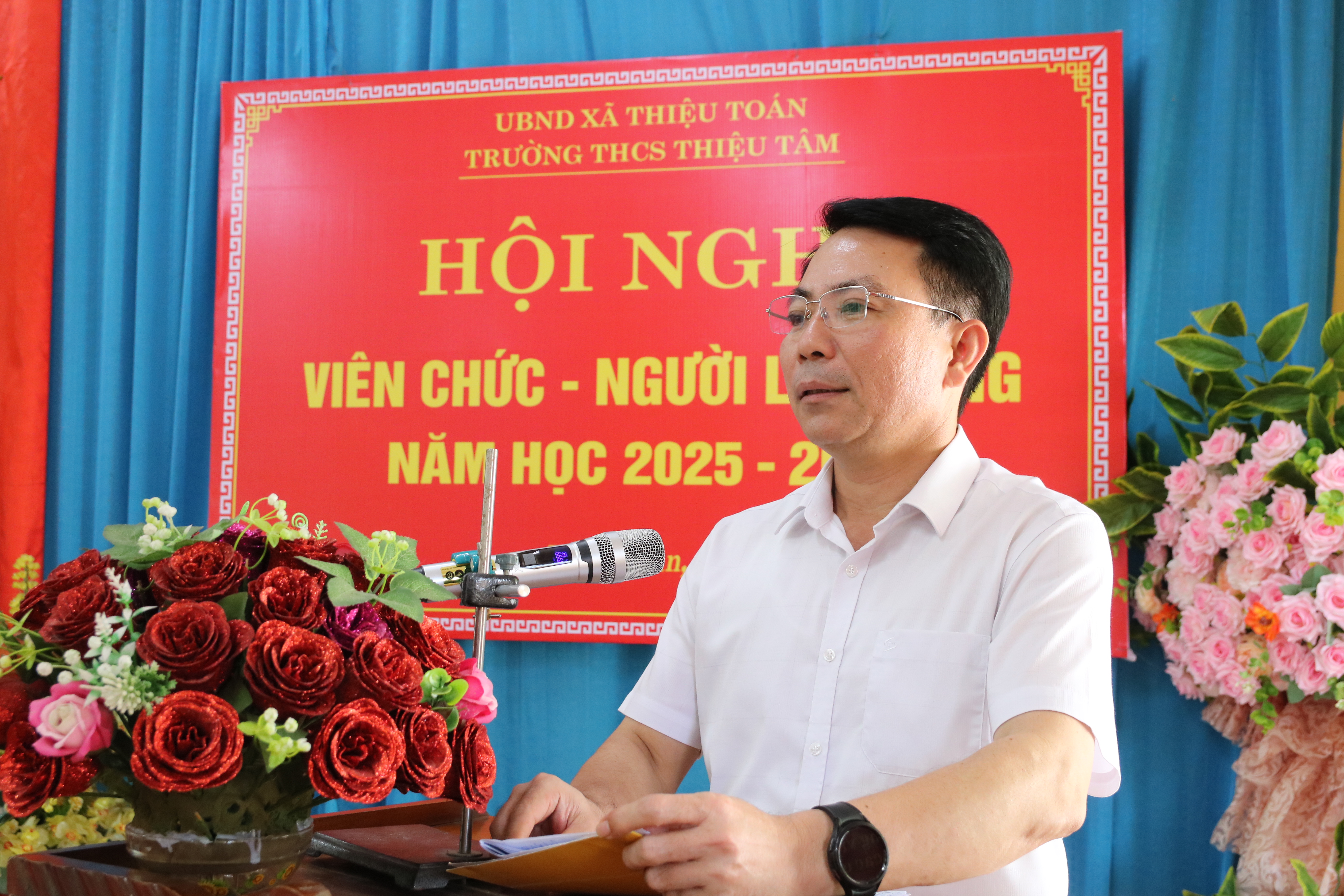 Đồng chí Đỗ Ngọc Luân, Bí thư Đảng ủy dự Hội nghị viên chức, người lao động năm học 2025- 2026 trường THCS Thiệu Tâm