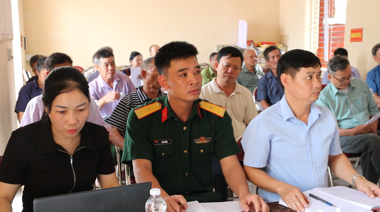 Tham dự buổi làm việc có các đồng chí Thường vụ Đảng ủy xã Bùi Sỹ Hà, Phó Chủ tịch HĐND xã; Lê Bá Sáng, Chỉ huy Trưởng Ban chỉ huy quân sự xã; Vũ Đình Dũng, Chánh Văn phòng Đảng ủy xã; Dương Đình Tùng, Ủy viên Ban chấp hành Đảng ủy, Chủ tịch Hội cựu chiến binh xã; cấp ủy chi bộ, Ban công tác Mặt trận, các đoàn thể và đông đảo đảng viên trong Chi bộ thôn Dân Quí.