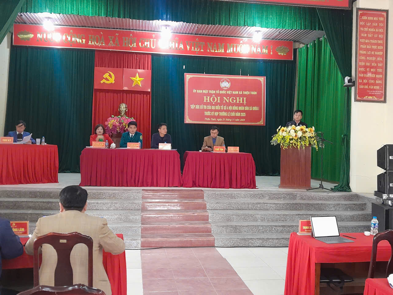 Ngày 21/11, 4 tổ đại biểu HĐND xã Thiệu Toán, khóa I, nhiệm kỳ 2021- 2026 đã tiếp xúc với cử tri các xã Thiệu Toán, Thiệu Hòa, Thiệu Chính và thị trấn Hậu Hiền củ. Tham gia buổi tiếp xúc có các ông Đỗ Ngọc Luân, Bí thư Đảng ủy, Bùi Trung Hiếu, Phó Bí thư Thường trực Đảng ủy; Trịnh Đức hùng, PBT, Chủ tịch UBND xã; Tham dự buổi tiếp xúc còn có các đại biểu HĐND xã khóa I, nhiệm kỳ 2021- 2026; các đồng chí Thường trực Đảng ủy, Hội Đồng nhân dân, Lãnh đạo UBND; đại diện các ngành, đoàn thể; hiệu Trưởng các nhà trường; Trưởng trạm y tế; các đồng chí Bí thư chi bộ, Trưởng thôn, khu phố Ban công tác mặt trận thôn, khu phố đông đảo cử tri trong toàn xã.