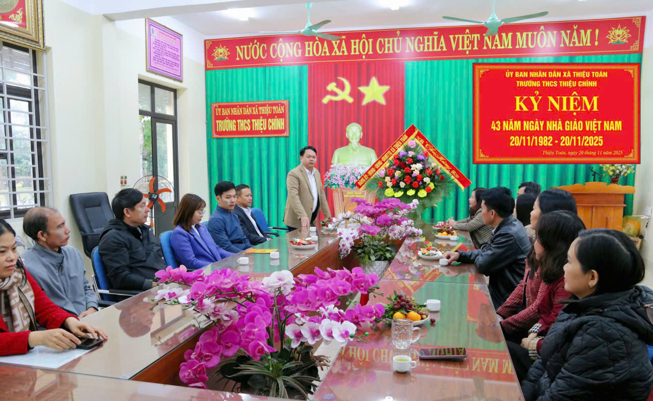 Nhân dịp Ngày Nhà giáo Việt Nam, thay mặt cấp uỷ, chính quyền và nhân dân xã Thiệu Toán, các đồng chí lãnh đạo xã gửi đến toàn thể cán bộ, giáo viên, nhân viên ngành giáo dục và các thầy cô giáo đã nghỉ hưu lời chúc Sức khỏe - Hạnh phúc - Thành công. Luôn giữ vững nhiệt huyết, tiếp tục cống hiến cho sự nghiệp trồng người cao quý; đạt được nhiều thành tích mới trong năm học 2025 - 2026; xây dựng môi trường giáo dục ngày càng đổi mới, chất lượng và thân thiện.