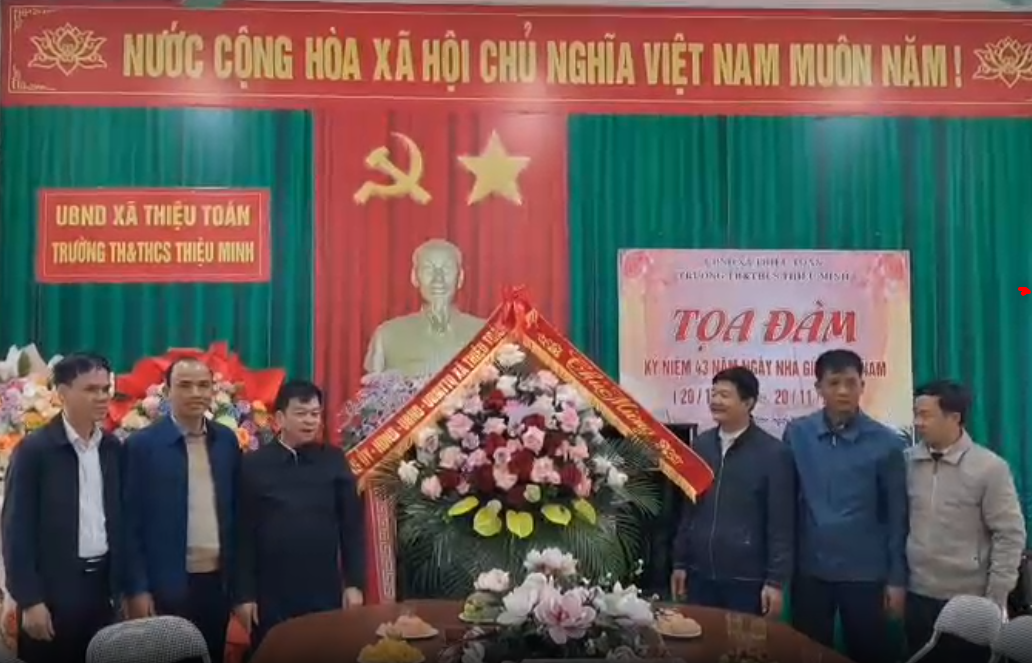 Đồng chí Trịnh Đức Hùng, Phó Bí thư Đảng uỷ, Chủ tịch UBND xã làm Trưởng đoàn đã đến thăm và chúc mừng trường THCS và Tiểu học Thiệu Minh.Tại Trường đồng chí Chủ tịch UBND xã ghi nhận những đóng góp của đội ngũ Ban Giám hiệu, Hội đồng sự phạm, giáo viên, công nhân viên trong các trường những người đã gắn bó, cống hiến một phần lớn cuộc đời cho sự nghiệp giáo dục của địa phương. Đồng chí nhấn mạnh: “Các thầy cô giáo luôn là tấm gương sáng về đạo đức, trí tuệ và lòng yêu nghề. Xã Thiệu Toán trân trọng và biết ơn những đóng góp thầm lặng nhưng vô cùng to lớn ấy.”