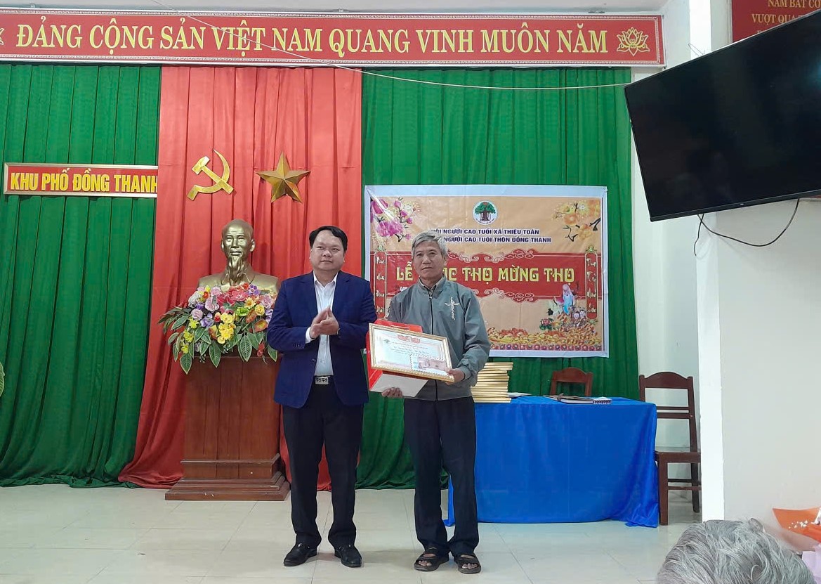 Tại buổi lễ, lãnh đạo xã Thiệu Toán bày tỏ sự trân trọng, biết ơn sâu sắc đối với những đóng góp quý báu của các thế hệ người cao tuổi; khẳng định người cao tuổi là vốn quý của gia đình và xã hội. Đồng thời mong muốn các cụ tiếp tục phát huy tinh cây cao bóng cả, luôn toả mát cho muôn đời sau. góp phần xây dựng quê hương Thiệu Toán ngày càng phát triển. Nhân dịp này, các đồng chí lãnh đạo xã đã trao giấy mừng thọ và quà chúc thọ cho các cụ cao niên được mừng thọ, chúc thọ trong dịp này.