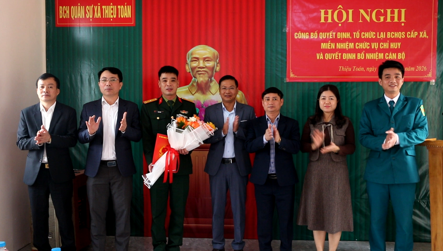 Sáng ngày 15/1, UBND xã Thiệu Toán tổ chức hội nghị công bố quyết định, tổ chức lại Ban chỉ huy quân sự xã, miễn nhiệm chức vụ chỉ huy và trao quyết định bổ nhiệm về công tác cán bộ. Dự hội nghị có đồng chí Đỗ Ngọc Luân, Bí Thư Đảng uỷ, Chủ tịch HĐND xã; các đồng chí thường vụ Đảng uỷ, lãnh đạo UBND, UBMTTQ; Chỉ huy trưởng, chỉ huy Phó, trợ lý Ban chỉ huy quân sự xã và các thôn đội trưởng,