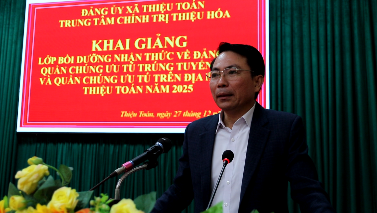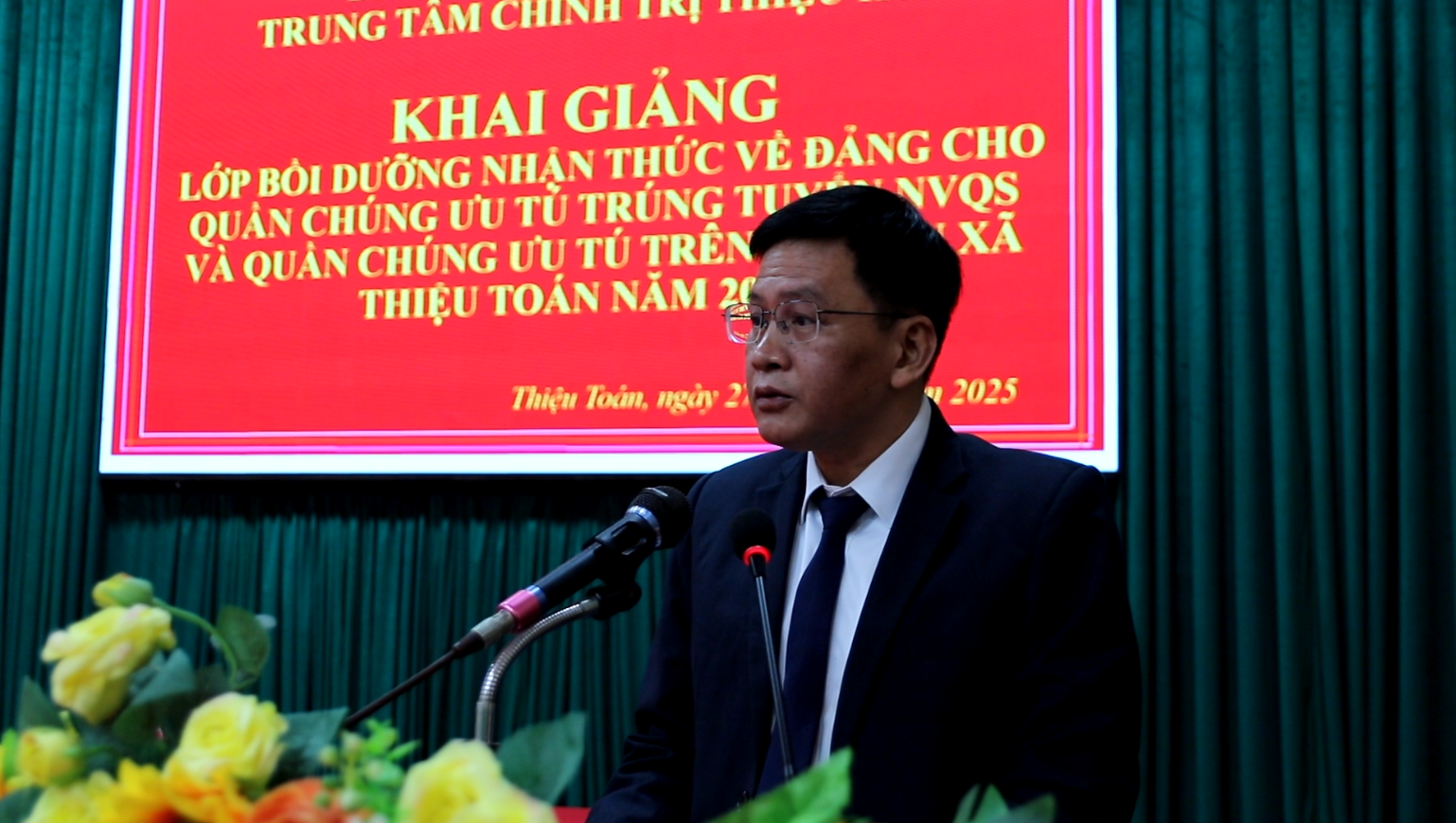 Phát biểu tại lễ khai giảng, đồng chí đồng chí Đỗ Ngọc Luân, Bí thư Đảng uỷ, Chủ tịch HĐND xã Thiệu Toán ghi nhận sự phối hợp của Trung tâm Chính trị trong việc tổ chức lớp học, đồng thời nhấn mạnh việc mở lớp bồi dưỡng nhận thức về Đảng cho quần chúng là hoạt động có ý nghĩa quan trọng, góp phần phát hiện, bồi dưỡng nguồn cán bộ trẻ ngay từ cơ sở. Đồng chí tin tưởng lớp học sẽ tạo động lực lan tỏa tinh thần học tập, rèn luyện trong thế hệ tuổi trẻ, góp phần xây dựng đội ngũ đảng viên kế cận có bản lĩnh, tri thức và phẩm chất chính trị vững vàng.