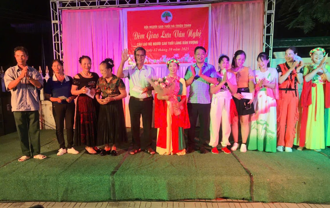 Nhằm tạo sân chơi văn hóa, tinh thần vui tươi, lành mạnh cho các hội viên người cao tuổi, đồng thời thắt chặt tình đoàn kết trong cộng đồng dân cư. Tối ngày 12/10/2025, tại Nhà văn hóa thôn Dân Vượng, xã Thiệu Toán, Hội Người cao tuổi thôn Dân Vượng đã long trọng tổ chức Đêm giao lưu văn nghệ chào mừng Ngày Quốc tế Người cao tuổi (1/10) và kỷ niệm những đóng góp to lớn của lớp người cao tuổi trong công cuộc xây dựng quê hương. Tham dự đêm giao lưu văn nghệ có đồng chí Phạm Hải hiệp, Phó Chủ tịch UBND xã, đại diện Hội người cao tuổi của xã; đại diện cấp ủy, Chính quyền và đông đảo nhân dân thôn Dân Vượng. Đặc biệt, hơn 100 hội viên người cao tuổi trong thôn và các thôn Dân Chính, Dân Quyền- Dân sinh, Dân Quý, Dân Tiến, Thái Dương, Đồng Thanh, Đồng Tiến và Toán Tỵ và các câu lạc bộ dân vụ.mang đến không khí ấm cúng, thân tình và đầy cảm xúc.