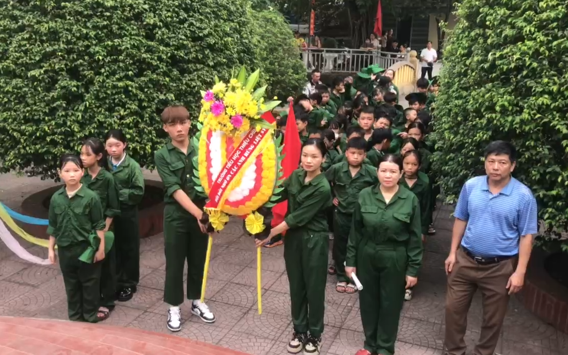 Mở đầu chương trình là lễ dâng hương trang nghiêm tại Đài tưởng niệm các anh hùng liệt sĩ trên địa bàn của Ban giám hiệu, cán bộ, giáo viên nhân viên và gần 400 học sinh. Trong không gian lắng đọng, thầy và trò nhà trường đã thành kính dâng lên những nén hương thơm, bày tỏ lòng biết ơn sâu sắc đối với các anh hùng đã hy sinh vì độc lập, tự do của Tổ quốc. Sự hy sinh anh dũng của các liệt sĩ đã giúp các em học sinh hiểu hơn về giá trị của hòa bình hôm nay, từ đó nuôi dưỡng tinh thần yêu nước và ý thức trách nhiệm đối với quê hương.