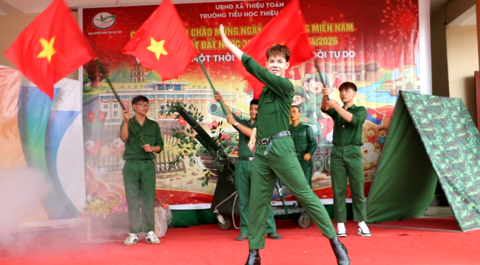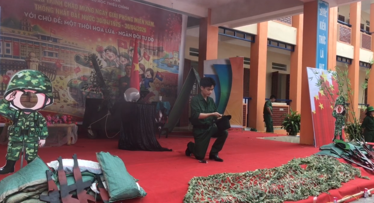 Trong không khí hào hùng của những ngày tháng 4 lịch sử, hướng tới kỷ niệm Ngày Giải phóng miền Nam, thống nhất đất nước 30/4, sáng ngày 17/4, Trường Tiểu học Thiệu Chính đã tổ chức chương trình trải nghiệm với chủ đề “Một thời hoa lửa – Ngàn đời tự do”. Hoạt động không chỉ mang ý nghĩa giáo dục truyền thống sâu sắc mà còn tạo cơ hội để học sinh được sống lại những khoảnh khắc lịch sử thông qua các trải nghiệm sinh động, trực quan.