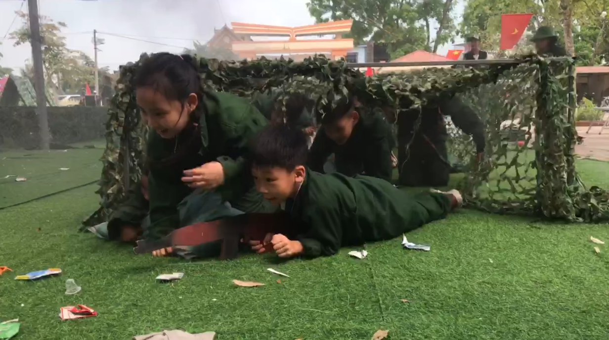 Một trong những hoạt động thu hút sự quan tâm lớn là trải nghiệm chui hầm, vượt rào dây thép gai. Đây là thử thách đòi hỏi sự khéo léo, dũng cảm và tinh thần kiên trì. Dưới sự hướng dẫn của thầy cô, các em đã lần lượt vượt qua các chướng ngại vật, cảm nhận phần nào sự gian khổ mà các chiến sĩ ngày trước từng trải qua. Tiếng cổ vũ vang lên không ngớt, tạo nên bầu không khí hào hứng và đoàn kết.