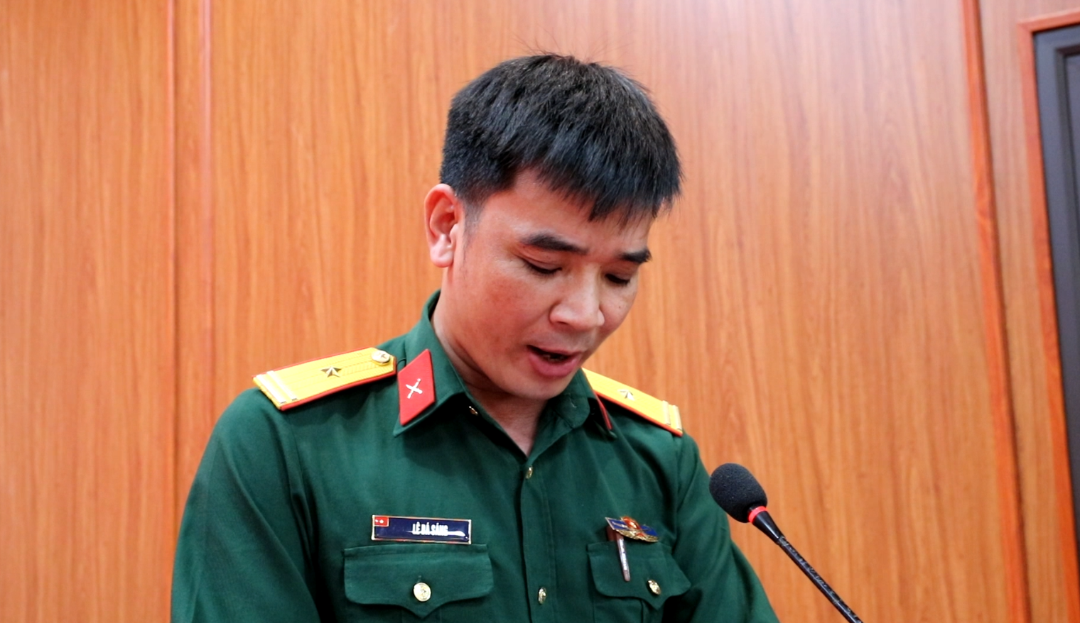 Đ/C Lê Bá Sáng, Chỉ huy Trưởng Ban chỉ huy quân sự xã báo cáo kết quả công tác tuyển quân năm 2026